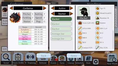 This is a baseball management game with Narrative AVG + Text Simulation at its core. Players do not control matches directly; instead, you focus on managing lineups and building team depth.